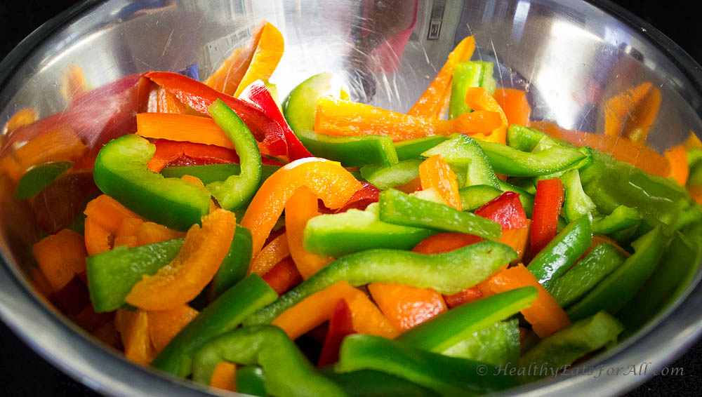 Red, Green and Yellow bell peppers – 3 peppers, sliced (mix and match colors)
