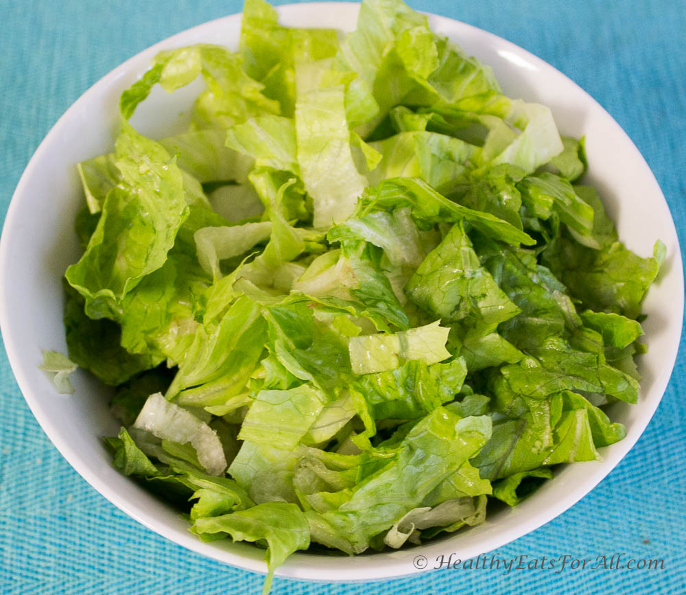 • There should be chopped up romaine lettuce in 1 bowl, drained black beans in another, salsa in another and grated cheese in a separate bowl.