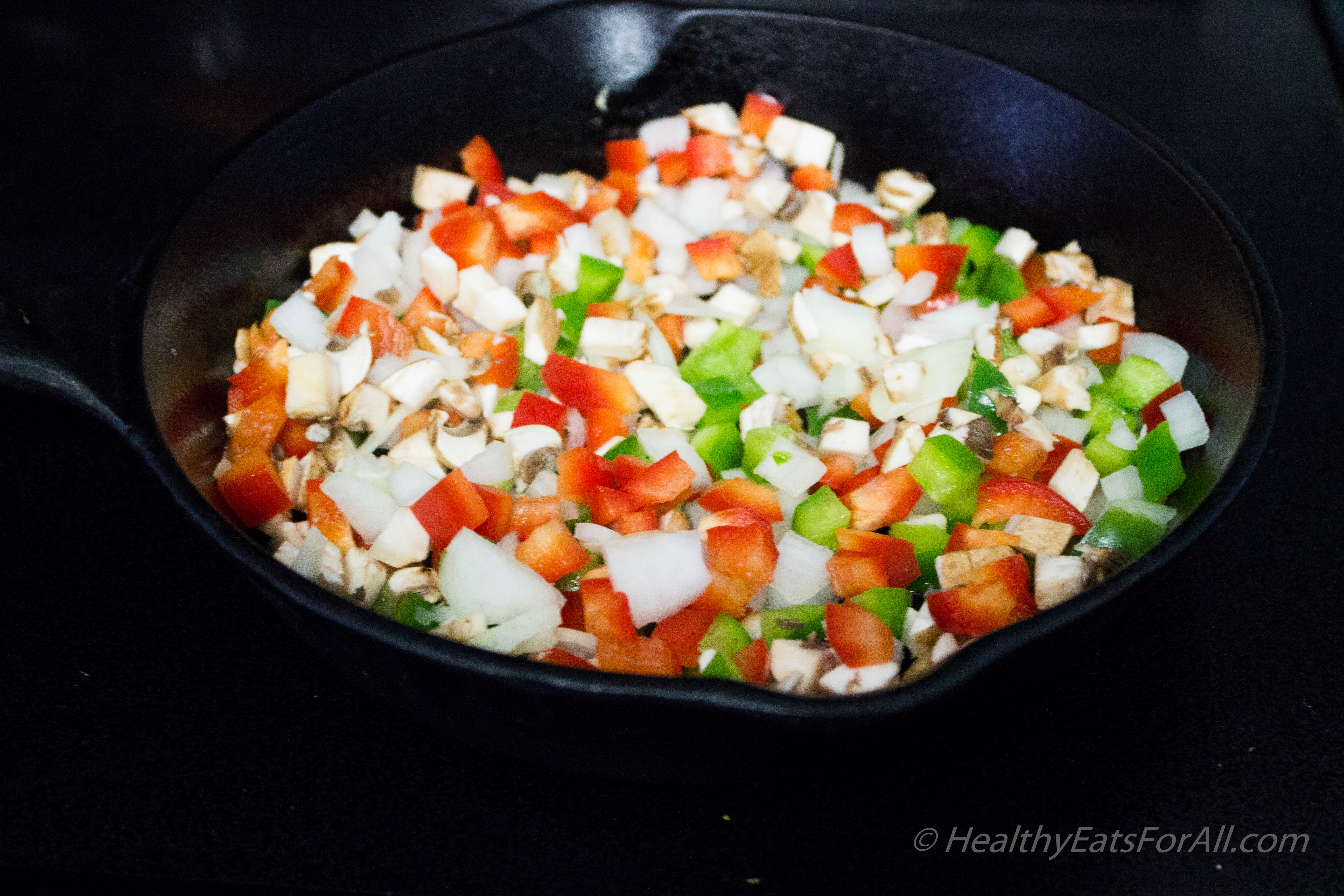 · Add 1-1 ½ T of sautéed veggies to each muffin pan.