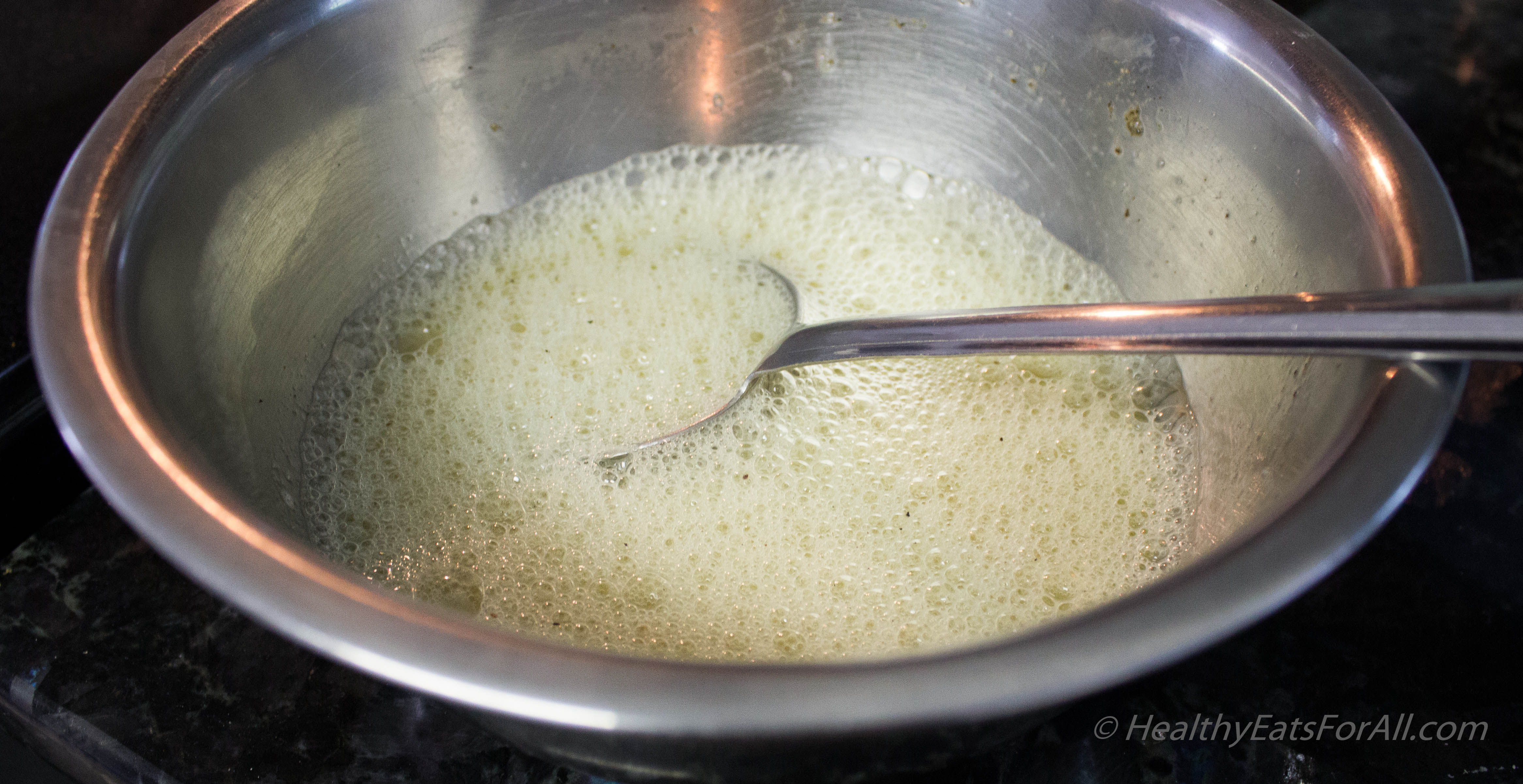 · Whisk the egg whites with the milk. Add salt and pepper. Whisk again.