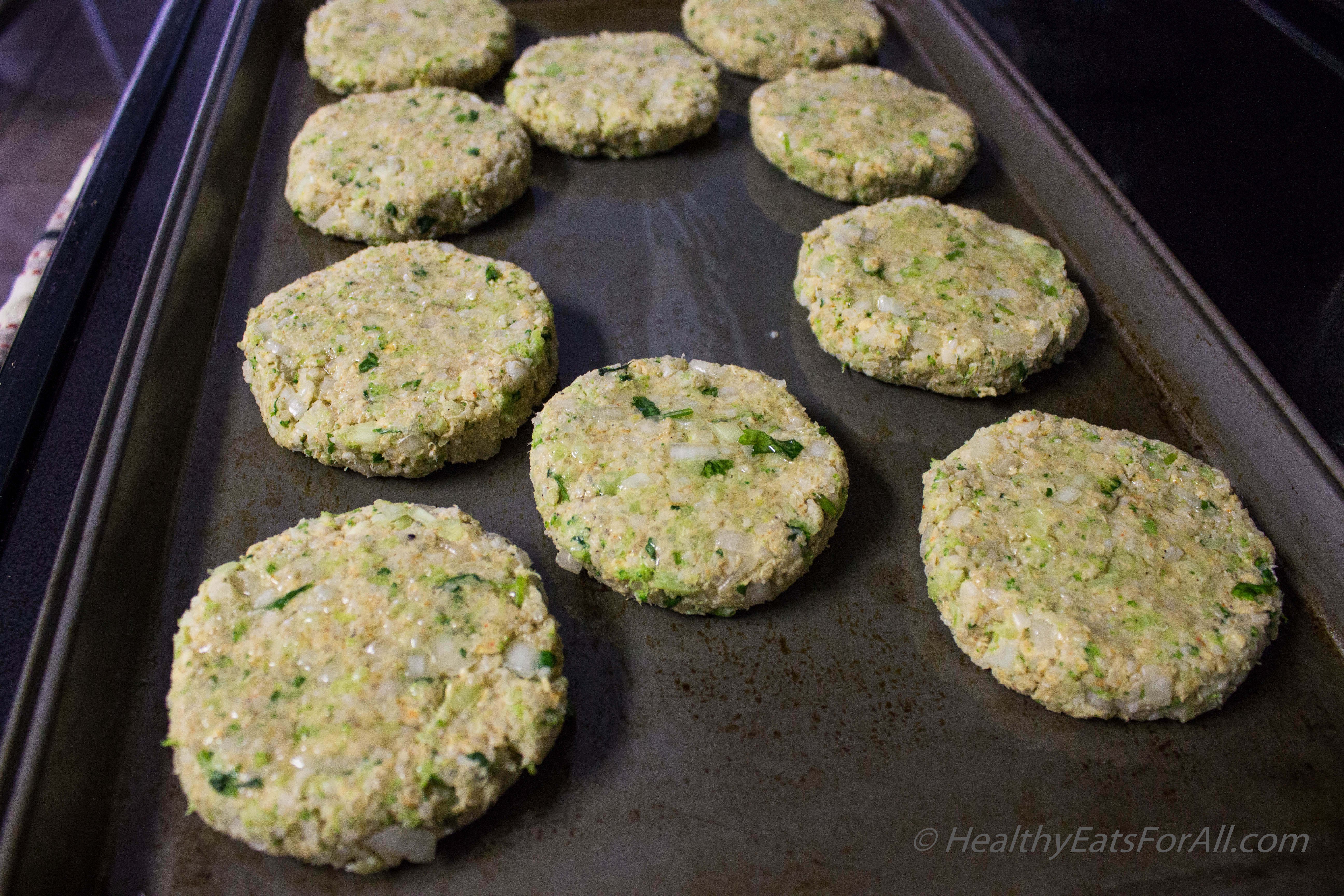 ·         Well oil a pan. Put the patties in it and lightly brush them with oil on top.
