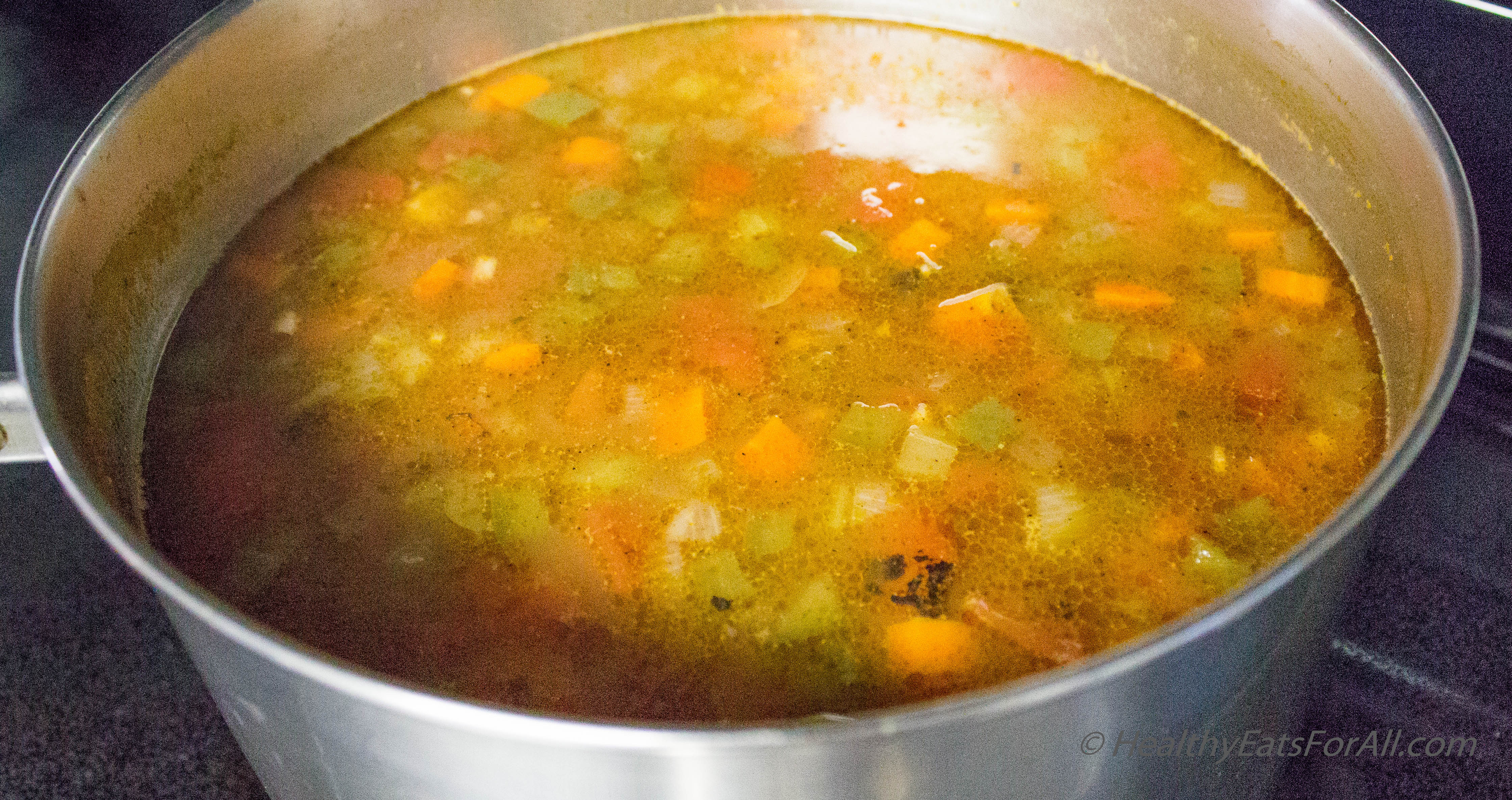 · Stir all the veggies for a bit then add the vegetable broth.