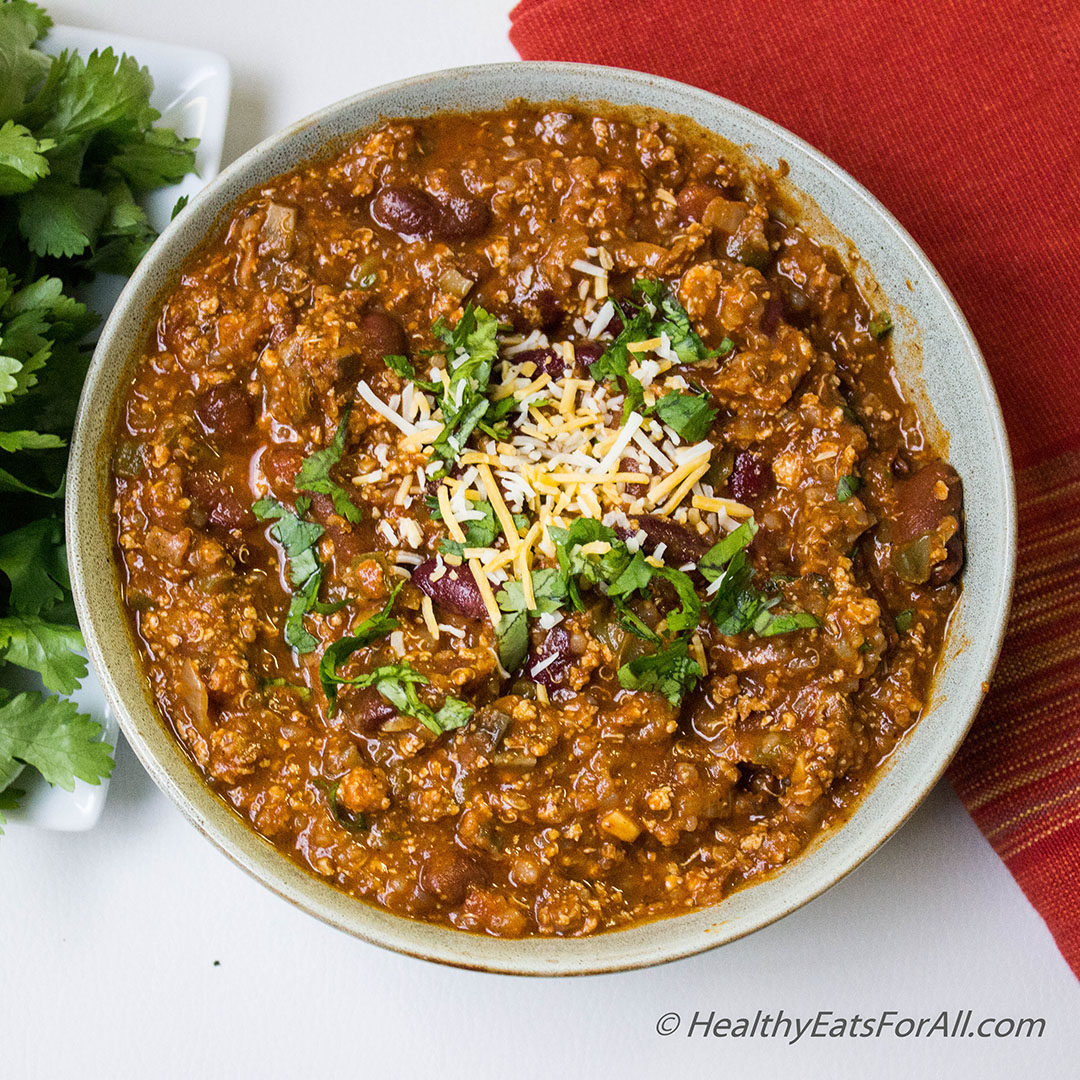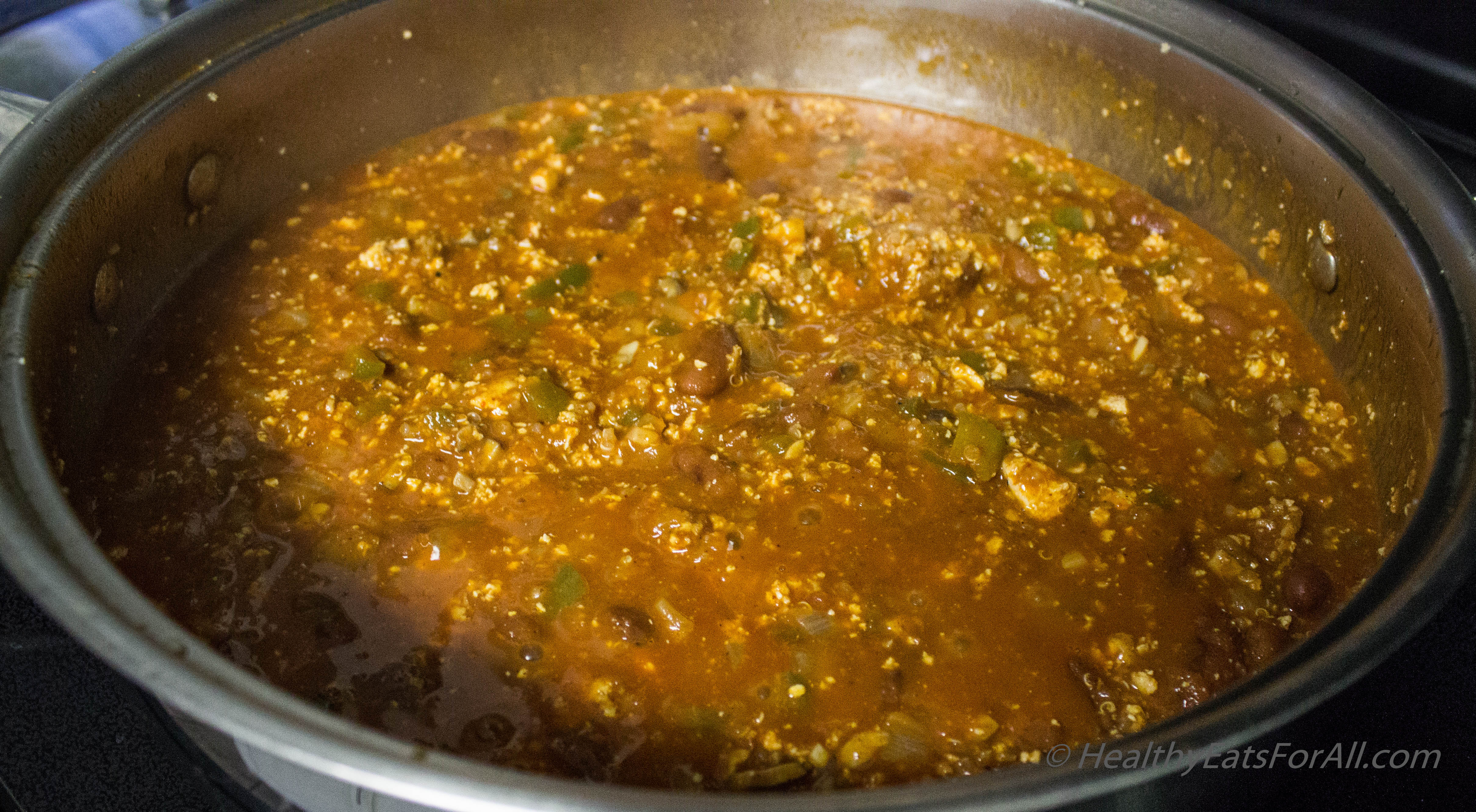 With that in mind, I have been giving recipe makeovers to a lot of dishes we like at our home. Chili is one of those favorite fall/winter dishes which is extremely popular at our house. Cooking chili fills the entire house with its amazing aroma! Plus, if you make this in bulk you have the benefit of having plenty of leftovers for next week’s lunch 🙂 I know it’s a big transition to replace the ground meat in the chili but definitely be sure to give it a try, because it has so many nutritional benefits. Who knows – you might even like it more!