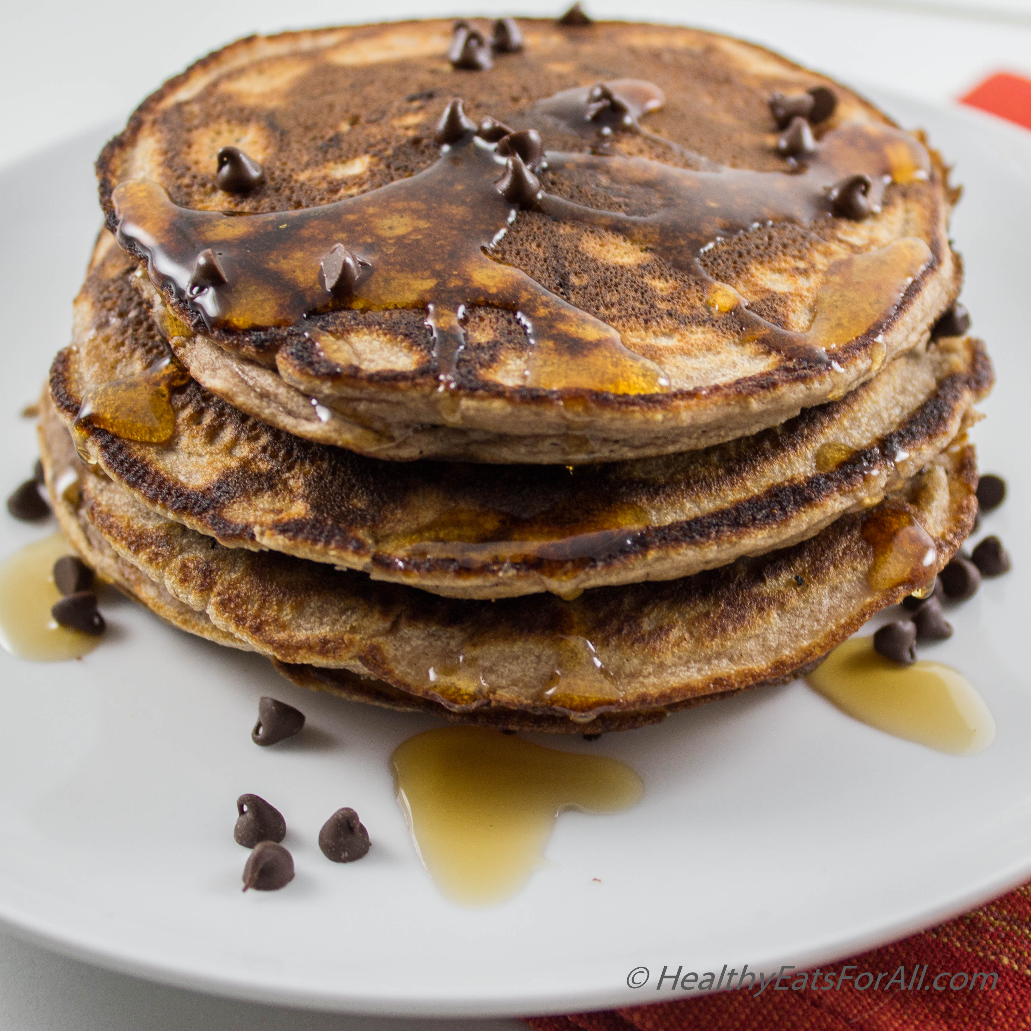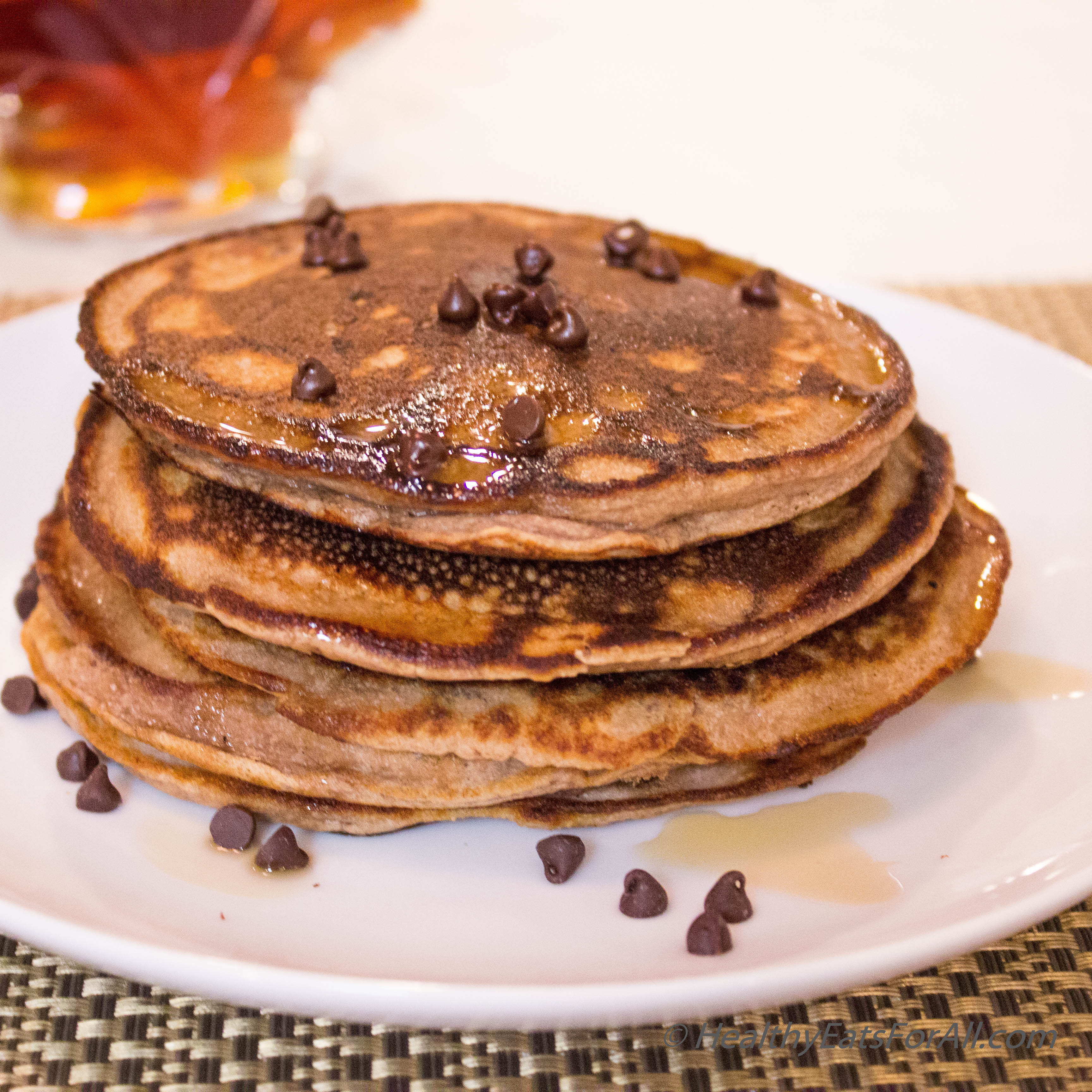 We all know that it is strongly recommended to eat breakfast, especially with protein to help keep us satiated and to get our metabolism revved up for the day. For these reasons, having a protein-rich breakfast helps with natural weight loss. But knowing it and actually doing it are two very different things. I am a person who needs variety in their food 🙂 So it’s very boring for me to have the same old breakfast day after day. Usually in our house we used to reserve pancakes for our big Sunday breakfasts where I would make sausages and eggs for protein to complement the pancakes. But after creating my recipe for protein chocolate chip brownies, I began to wonder if I could make pancakes and waffles using the same concept. Pancakes would definitely add some variety to the breakfast menu!