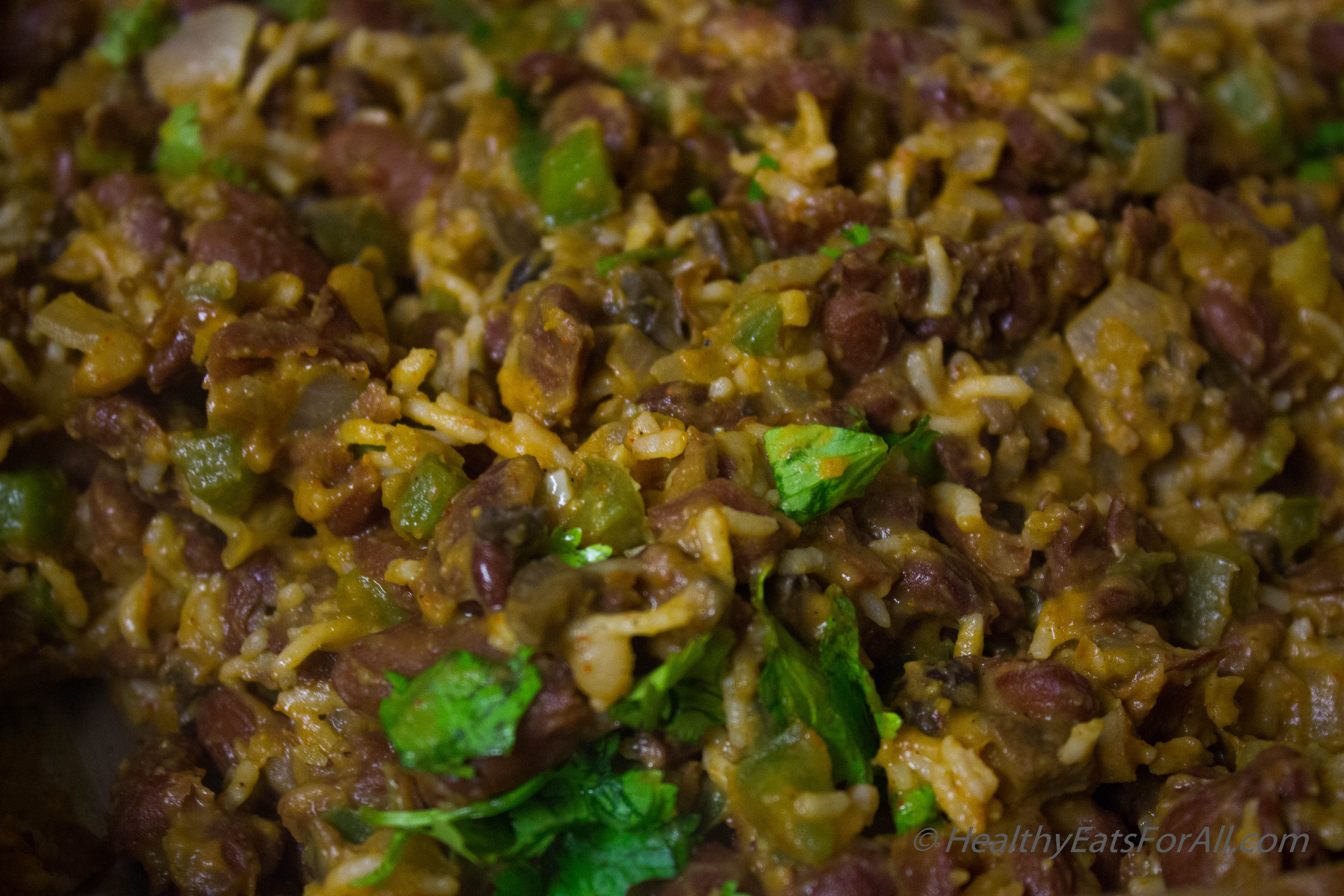 One of our favorite go-to comfort foods during the winter are enchiladas with Mexican rice. They’re spicy, gooey, flavorful, and hearty – all combined in one dish! I think it’s such a hit in our house because the flavors are so similar to ones in Indian food 🙂 The filling can be used for either enchiladas or burritos, if you wanted to change things up. If I’m in a crunch, I use ready-made Enchilada sauce, but otherwise I just make it at home. Sometimes I make the filling with chicken or ground turkey instead of beans, but my family’s favorite is this vegetarian version!