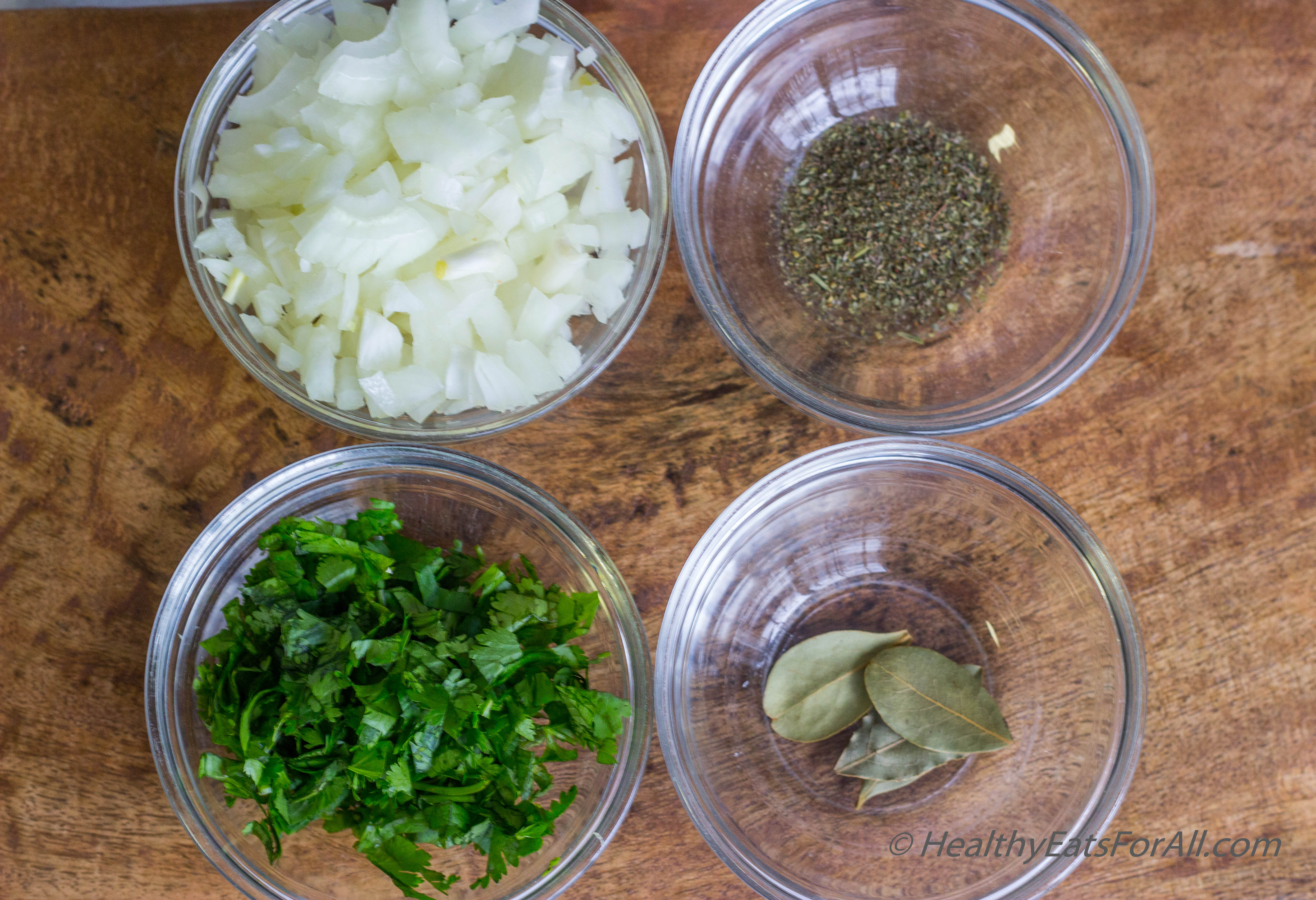 - Warm a large pot. Add the extra virgin olive oil. Add the onion and sauté for 2-3 minutes till onions are translucent.
