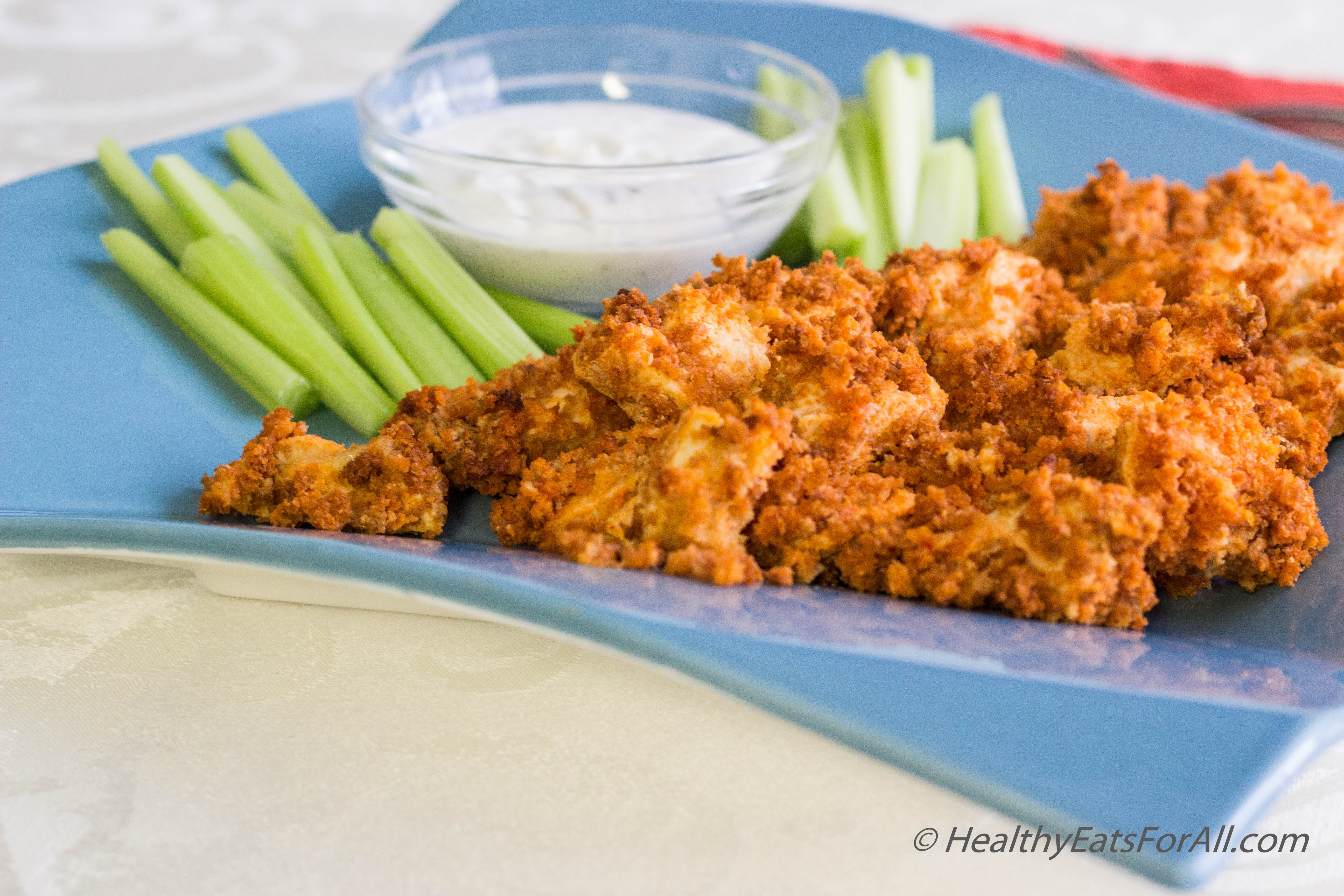 One of the best parts about buffalo chicken is how good it tastes with ranch dressing, but that dressing can sometimes carry its own share of fat and extra calories. Nevertheless, I know that I can’t do without it, and I’m sure others would agree! So I’ve linked my homemade recipe for a healthier Ranch dressing (part of the Homemade Salad Dressings/Dips Part I post), also using Chobani yogurt as a main component. Don’t sacrifice your healthy diet to have some good comfort food this weekend; try these buffalo chicken bites and dressing and let me know what you think in the comments! And be sure to keep posted for more Super Bowl recipes coming soon 🙂