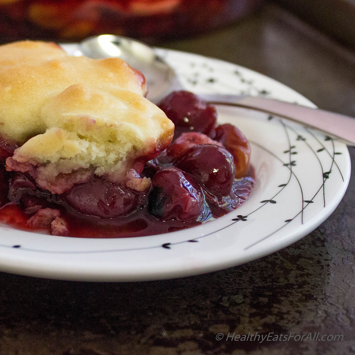 For those of you who are vegan, there is another version that I make with some key substitutions of the ingredients. Instead of the regular flour, use almond meal or a mix of almond meal and coconut flour. As a result, the only difference will be that the batter won’t rise and won’t be as puffy as regular flour will be. Then, instead of the regular milk, use coconut milk. With these simple swaps, you can have a healthy and delicious vegan cherry cobbler!