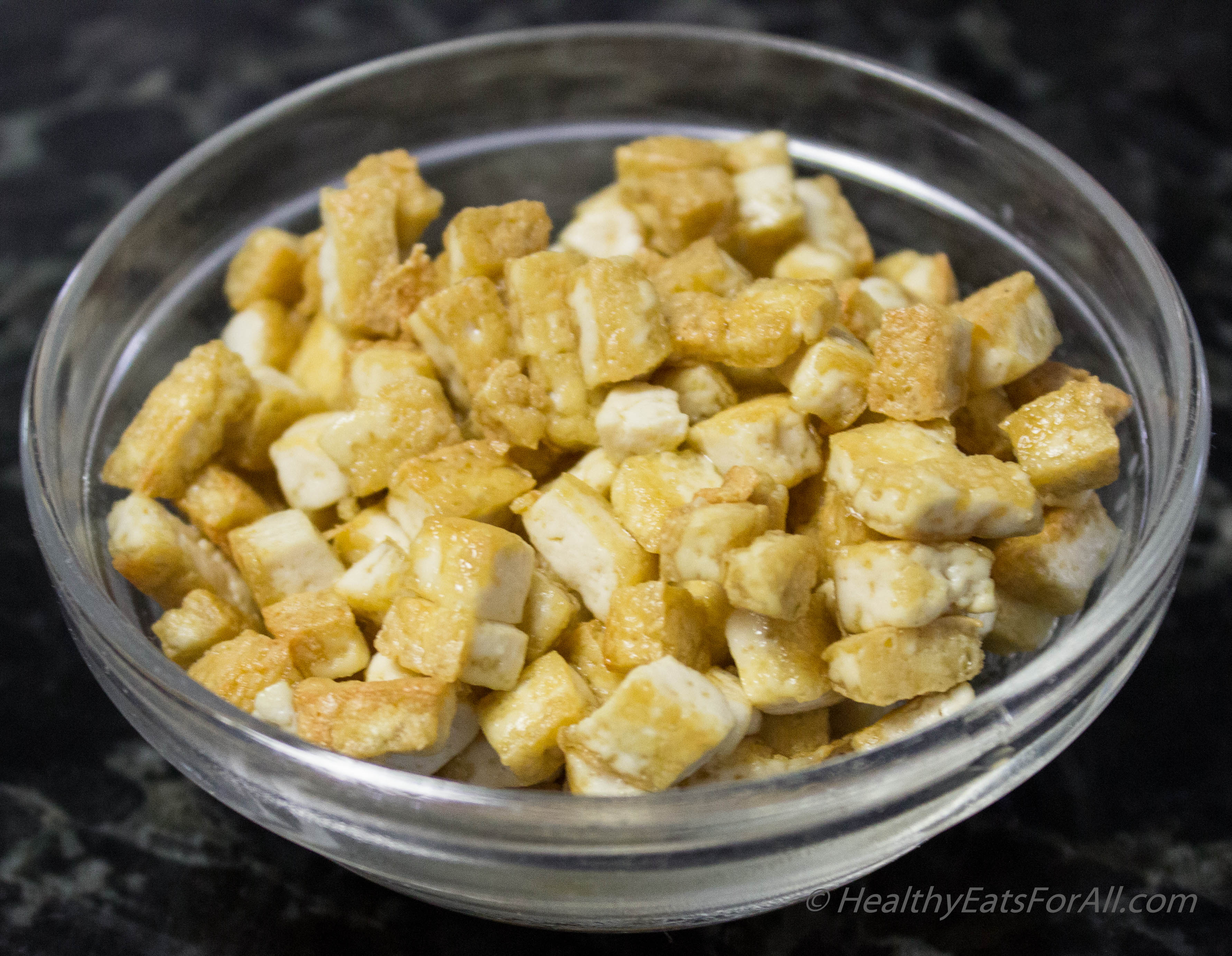 - Make sure all the veggies and tofu are diced to a similar size.