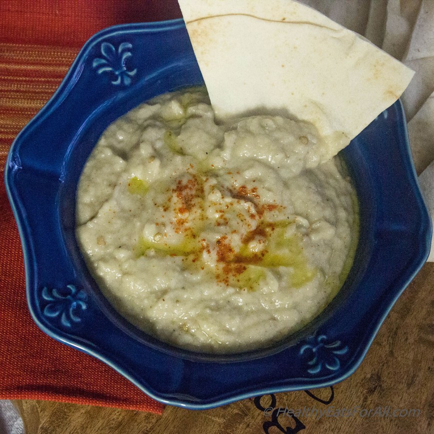 To give its traditional creaminess I add a little bit of plain Greek yogurt (you can add regular plain yogurt also) and Tahini sauce. Feel free to adjust the yogurt, lemon juice and yogurt to give the dip your desired consistency and flavor. In case you are vegan, feel free to skip the yogurt and increase the lemon juice a tad bit to balance the flavor. It tastes great with pita bread and even with veggies. It stays well in the fridge for 3-4 days also. This makes Baba Ghanoush, an excellent choice as a party appetizer; or for picnics etc. It is a fantastic way to incorporate more veggies in your diet!