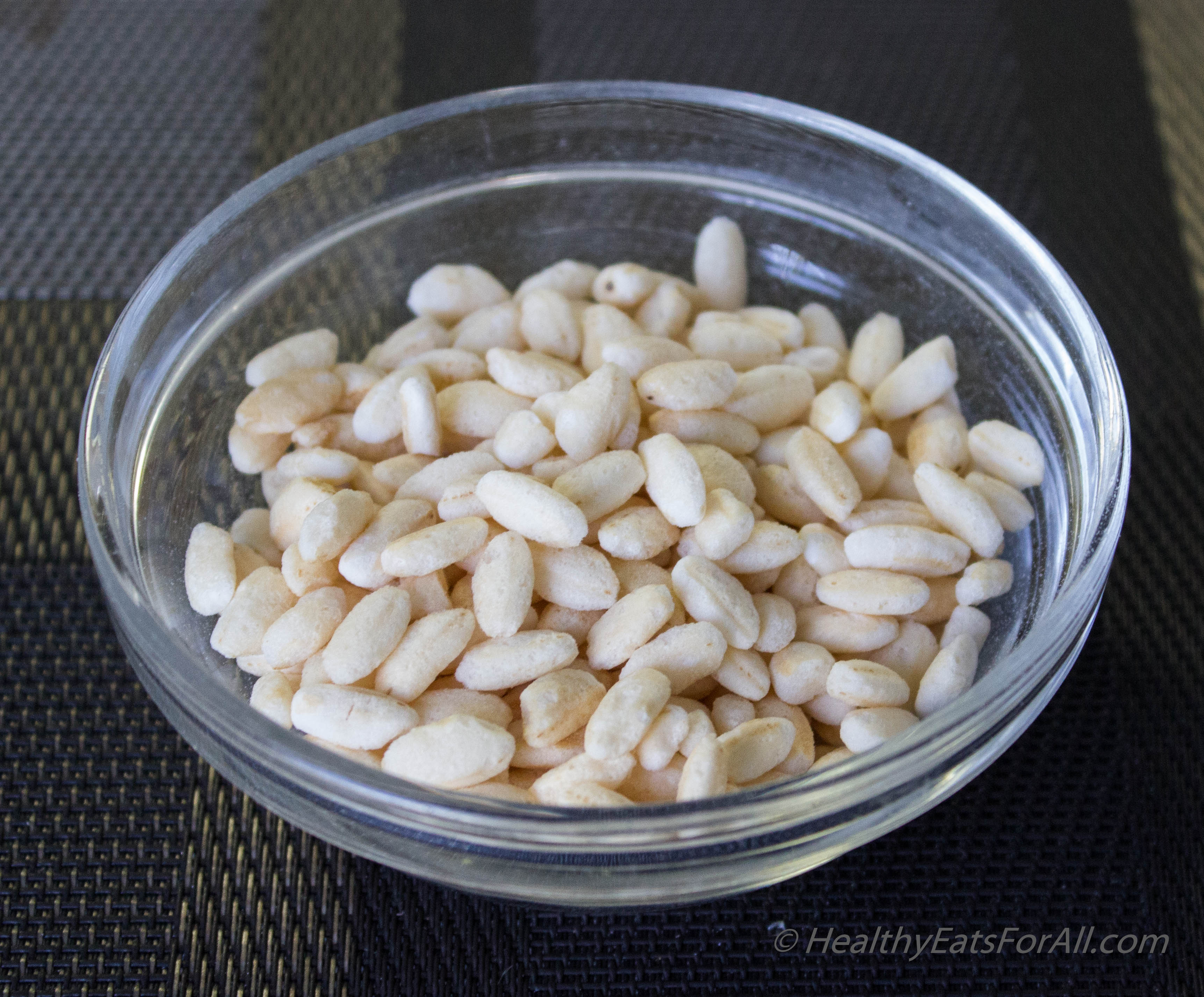 - Add all the nuts, salt and rice krispies to a bowl and mix.