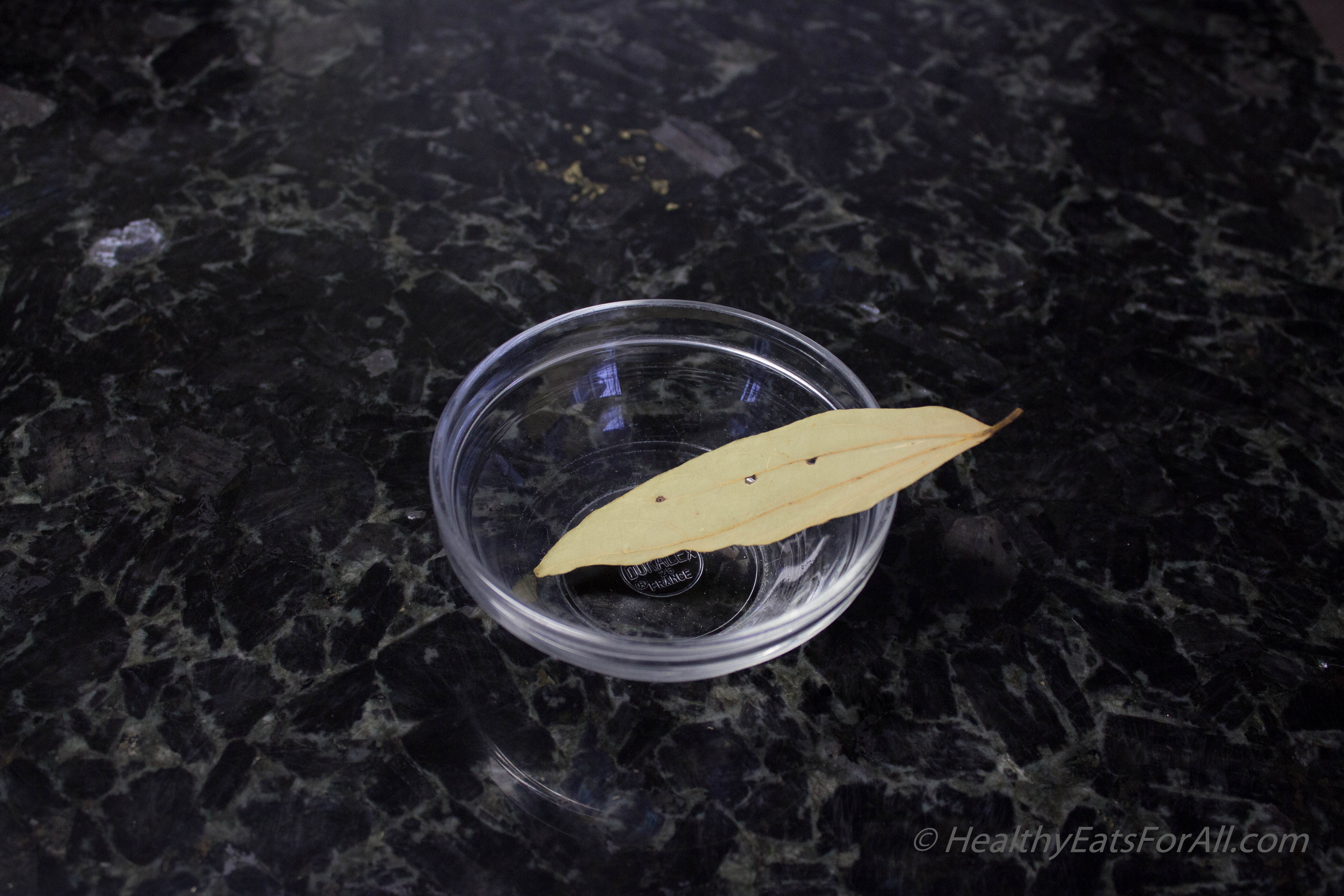 - Heat a pot. When warm, add the 1.5 Tbs olive oil. Then add the onion, garlic and bay leaf.