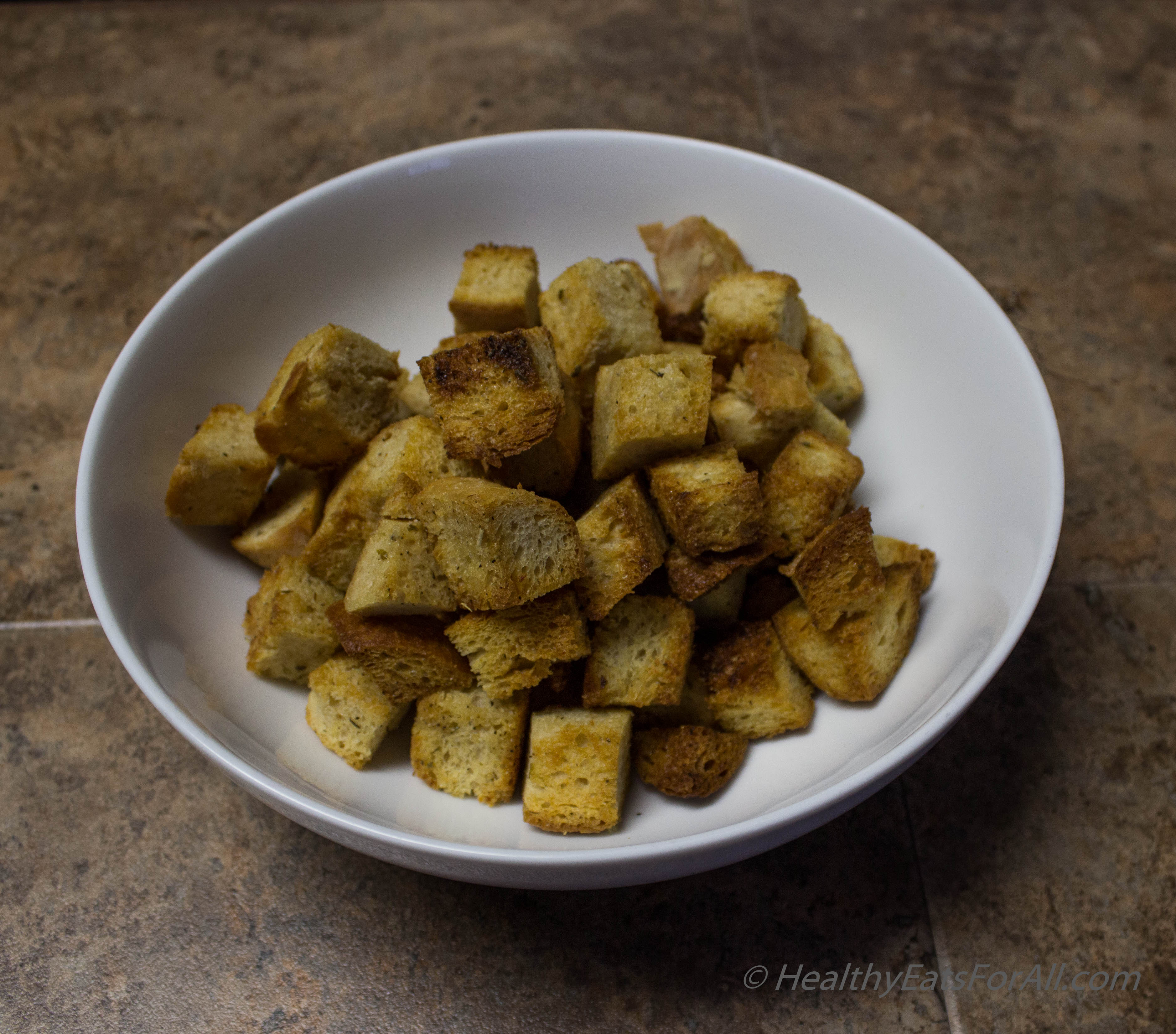 In order to make the croutons, I used 3-4 days old Italian bread. But if you don’t have that, you can use regular bread slices also. It is very versatile. Feel free to add grated parmesan cheese, red chili flakes etc. for extra flavor.